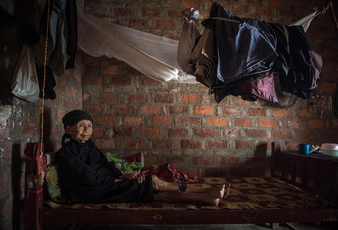 91-year-old Huang Youliang, who was a comfort woman in 1942, rests in bed in her home in Lingshui county, Hainan Province in 2014. Photo: CFP