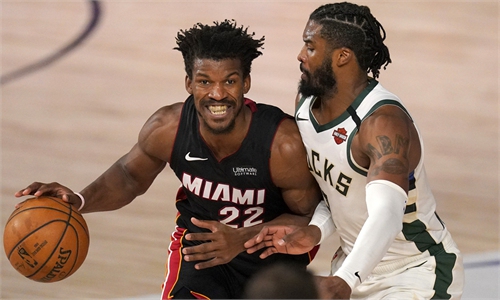 Jimmy Butler seized control down the stretch, scoring a career-playoff high 40 points as the Miami Heat beat the Milwaukee Bucks in the opening game of their second round NBA playoff series on Monday.