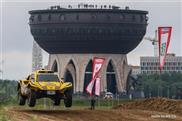 China's Han Wei and his co-driver Garcin Jean-Pierre of France of Geely Boyue Hanwei SMG team compete during the Silk Way Rally 2016 Moscow-Beijing in Kazan, Russia, on July 9, 2016.