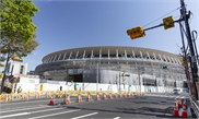 Walking around the site of the New National Stadium in Tokyo, there's little noise to indicate the stadium is under construction.