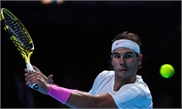 Rafael Nadal prepares a backhand against Daniil Medvedev on Wednesday in London. Photo: IC