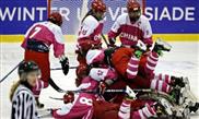 China's players celebrate their victory after winning the women's ice hockey competition against the United States at the 27th World Winter Universiade in Granada, Spain, Feb. 5, 2015. China won 2-1. (Xinhua/Meng Yongmin)