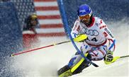 France's Jean-Baptiste Grange produced a blistering second slalom run Sunday, upsetting pre-race favorite Marcel Hirscher to claim his second career world championship title.