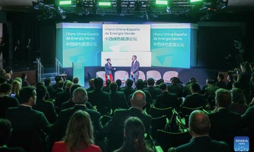 The first Spain-China Forum on Green Energy was held Monday in the Spanish capital Madrid, bringing together around 300 representatives from government departments, industry associations, and leading energy companies from both countries to discuss deepening cooperation on the green transition.