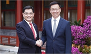 Chinese Vice Premier Han Zheng Wednesday met with Singaporean Deputy Prime Minister and Finance Minister Heng Swee Keat in Beijing, pledging to strengthen bilateral ties.