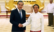 Myanmar President U Win Myint met here Saturday with visiting Chinese State Councilor and Foreign Minister Wang Yi with both sides pledging to strengthen high-level exchanges to push bilateral ties to a new high.