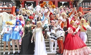 Cosplay fans from over 30 countries pose at a temple in Nagoya on Sunday, before attending the 2018 World Cosplay Summit in the central Japan city. Photo: IC