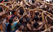 Sri Lankan Hindus pass the heavy coir ropes to pull the chariot carrying the image of a deity during the annual religious procession of Sri Kailawasanathan Swami Devasthanam Hindu temple in Colombo, Sri Lanka, on Sunday. The temple in the part of the Colombo city known as Slave Island or Kompannaveediya is dedicated to God Murugan or Skanda. This deity is also known as God Kataragama by the local Sinhalese majority who are mainly Buddhists. Photo: IC