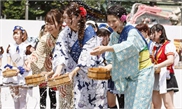 Maid cafe waitresses sprinkle water during the Uchimizukko festival at the Kanda Myojin Shrine on Saturday, in Tokyo. Maid cafe waitresses attended the annual event, a Japanese summer tradition celebrated in Akihabara since 2003, to splash water on the hot pavement to cool down the air. Photo: VCG