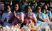 Well-wishers pray during a ceremony to celebrate the 86th birthday of Thai Queen Sirikit, widow of the late King Bhumibol Adulyadej, in Narathiwat on Sunday. Photo: AFP