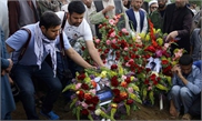 Journalists place floral wreath at the grave of Shah Marai, Agence-France-Presse's (AFP) chief photographer in Kabul, Afghanistan, on Monday. Marai was killed in a secondary explosion, which killed nine journalists and 16 others, following a suicide blast in Kabul on Monday. The attack sparked outrage around the world and underscored the dangers faced by Afghan media. Photo: IC