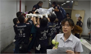 A Chulalongkorn University medical student arrives as volunteers prepare cadavers for a religious ceremony in Bangkok on Thursday.