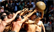 Local villagers compete in a mud ball wrestling festival in Van village, in the northern province of Bac Giang, Vietnam on Saturday. The festival is held on the fourth lunar month every four years, in order to celebrate the victory of four Vietnamese brothers as they defeated a group of demons in a mud ball wrestling match in a marsh in the fourth (possibly fifth) century. Photo: IC