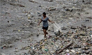 A woman picks up garbage on the shores of Manila Bay after a heavy downpour caused by Severe Tropical Storm Maliksi, east of the Philippines, on Sunday. Photo: AFP