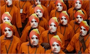 Indian students wear face masks and attire of Indian scholar monk Swami Vivekananda (1863 – 1902) at a rally to mark his birth anniversary in Chennai on Saturday. Vivekananda, an Indian Hindu monk, is considered a major force in the revival of Hinduism in modern India and was a key figure in the introduction of Yoga to the Western world. Photo: AFP