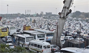 Heavy Traffic jam takes place due to route diversions at the Sirhaul toll, in Gurgaon, India, on Monday. There was complete chaos at the Sirhaul toll plaza on Monday as route diversions were put in place by authorities on a trial basis the day before, which led to confusion among commuters. Photo: VCG