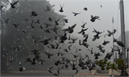 A flock of pigeons take flight amid heavy smog in Lahore on Sunday. Large swathes of Pakistan and north India have seen a spike in pollution with the onset of winter due to crop burning and the fact that cooler air traps particulates close to the ground, preventing them from dispersing – a phenomenon known as inversion. Photo: AFP