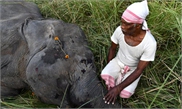 An Indian villager offers a prayer to the body of an elephant near Thakurkhchi Railway Station on the outskirts of Guwahati on Sunday. Two elephants were killed by a train while their herd was crossing a railway track. Scarcity of food and illegal encroachment by humans into forested areas has forced the wild elephants to visit populated areas in search of food. Photo: AFP