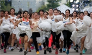 Thai brides-to-be compete in the “Running of the Brides” race in Bangkok, Thailand, on Saturday. Six hundred brides-to-be and their grooms participated in the race aimed to win more than 2 million baht ($61,000) of wedding package prizes, including a pair of white gold diamond rings and honeymoon trip to the Maldives. Photo: VCG
