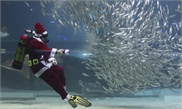 Dressed in a Santa Claus outfit, a diver feeds sardines as part of a series of events to celebrate Christmas at the Coex Aquarium in Seoul, South Korea, on Sunday. Photo: AP