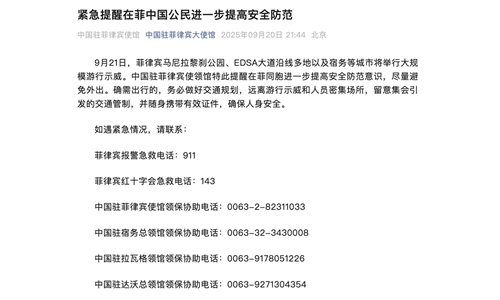 Embassies of China and other countries issue safety alerts ahead of mass protest in Philippines