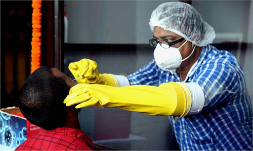 As a developing country with insufficient medical resources, India's incapacity in dealing with COVID-19 has been shown by its skyrocketing daily infection numbers, observers said, after the country set a fresh record for the number of infections registered in a single day, which surpassed the number of the US.