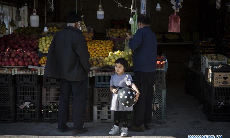 Afghan refugees buy fruit at a bazaar on the outskirts of Mashhad, Iran, Nov. 2, 2020. (Xinhua/Ahmad Halabisaz)