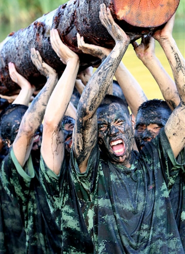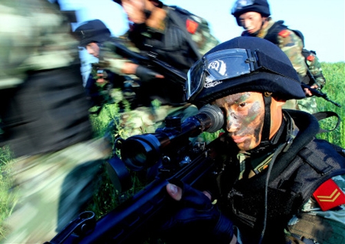 Recently, the officers and men of the 4th Detachment of the Shanghai Contingent of the Chinese People's Armed Police Force (APF) conducted actual-combat drill on such subjects as physical training, rapid assault, ambush and reconnaissance and so on in extreme hot weather. (Photo: China Military Online)