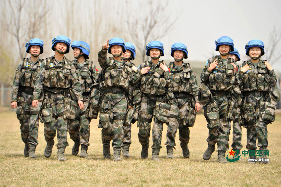 China’s first infantry squad of UN peacekeepers comprised entirely of women arrived in Juba, capital of South Sudan on April 8. The 13 women, who serve in the Jinan Military Area Command, were among 130 Chinese peacekeepers dispatched to South Sudan on April 7. They will join the 570 Chinese already in the area in carrying out UN peacekeeping missions. Photos from China’s Military Online document the all-female squad before their departure from Jinan, East China’s Shandong Province on April 7. Photo: 81.cn
