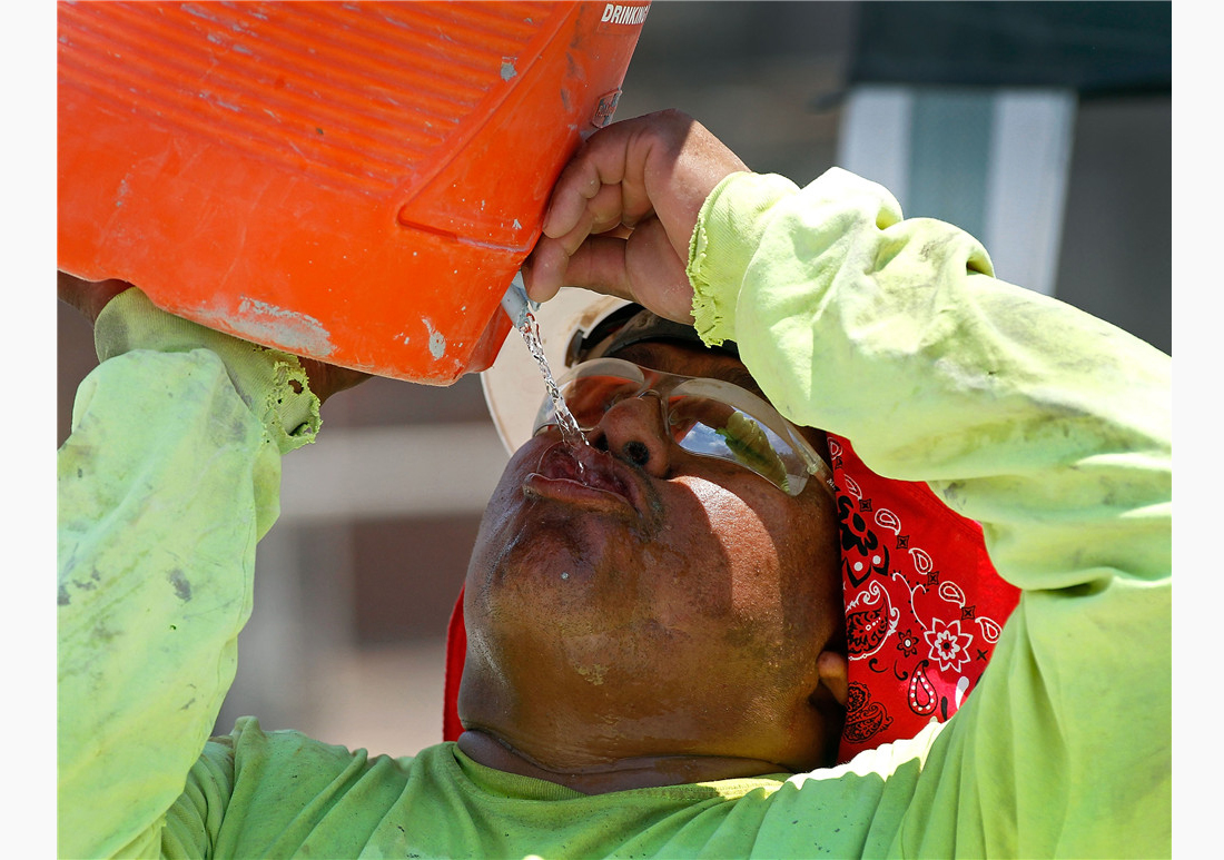 A construction worker drinks water to cool off in Phoenix, Arizona in US on June 20, 2017. The temperature in the city reached as high as 48.8 degrees on Tuesday as a heat wave hits southwest US. Photo: CFP