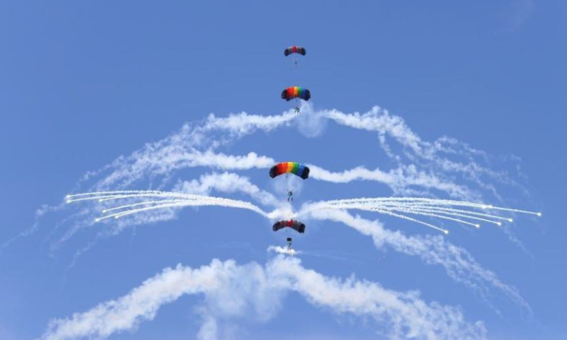 The dynamic parachute formation performs during the 2022 Jiangxi Aviation Sports Tourism Festival in Ji'an, east China's Jiangxi Province, June 14, 2022. (Photo: China News Service/Liu Zhankun)