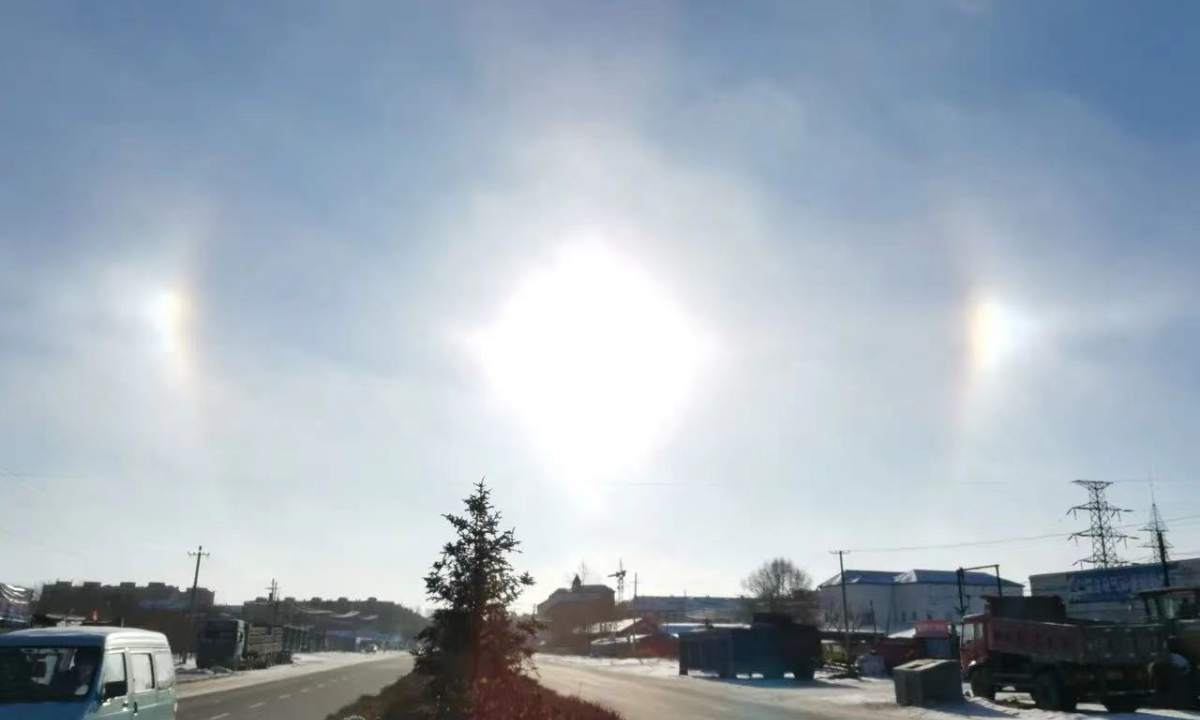 The phenomenon, called the parhelion, is related to the high latitude of Hulunbuir and the cold weather in winter, Wang said, adding that ice crystals in cirrostratus clouds 6,000 to 7,000 meters in the air refracted by light to make three suns appear in the sky.