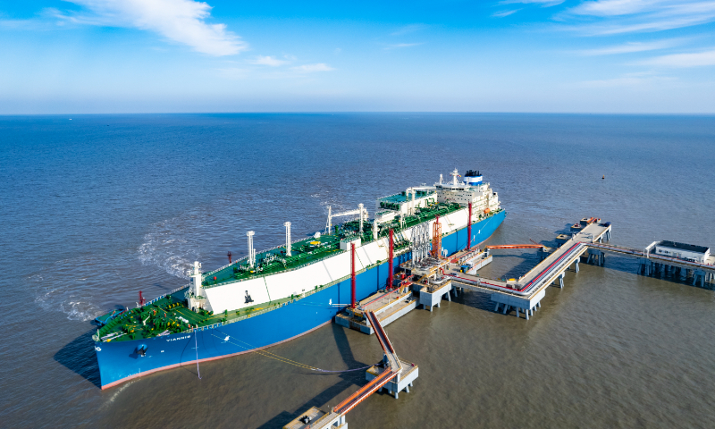 A liquefied natural gas (LNG) carrier from Australia prepares to offload LNG at a port in Qidong, East China's Jiangsu Province on December 5, 2021. Photo: VCG