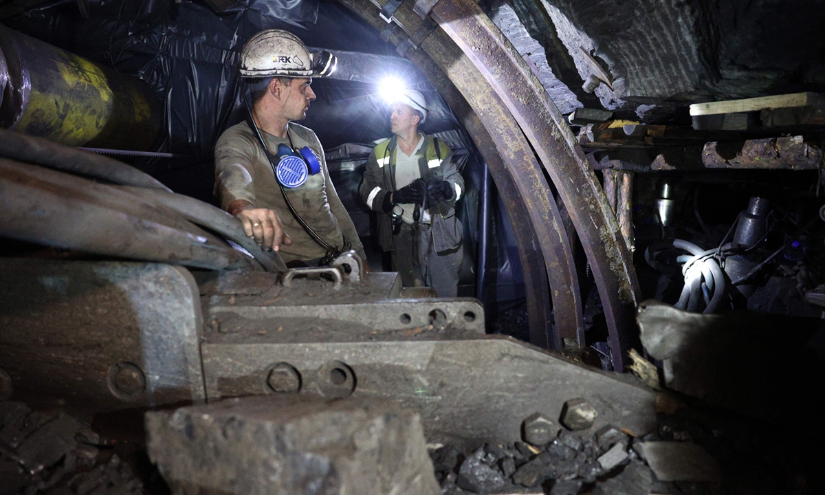 Miners work in a tunnel at a coal mine in the Dnipro region in Ukraine, on June 9, 2023. Photo: VCG