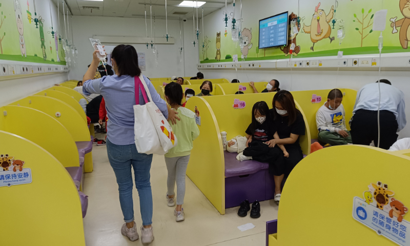 Children and parents at the pediatric outpatient emergency department of a hospital in Shanghai on October 18, 2023 Photo: VCG