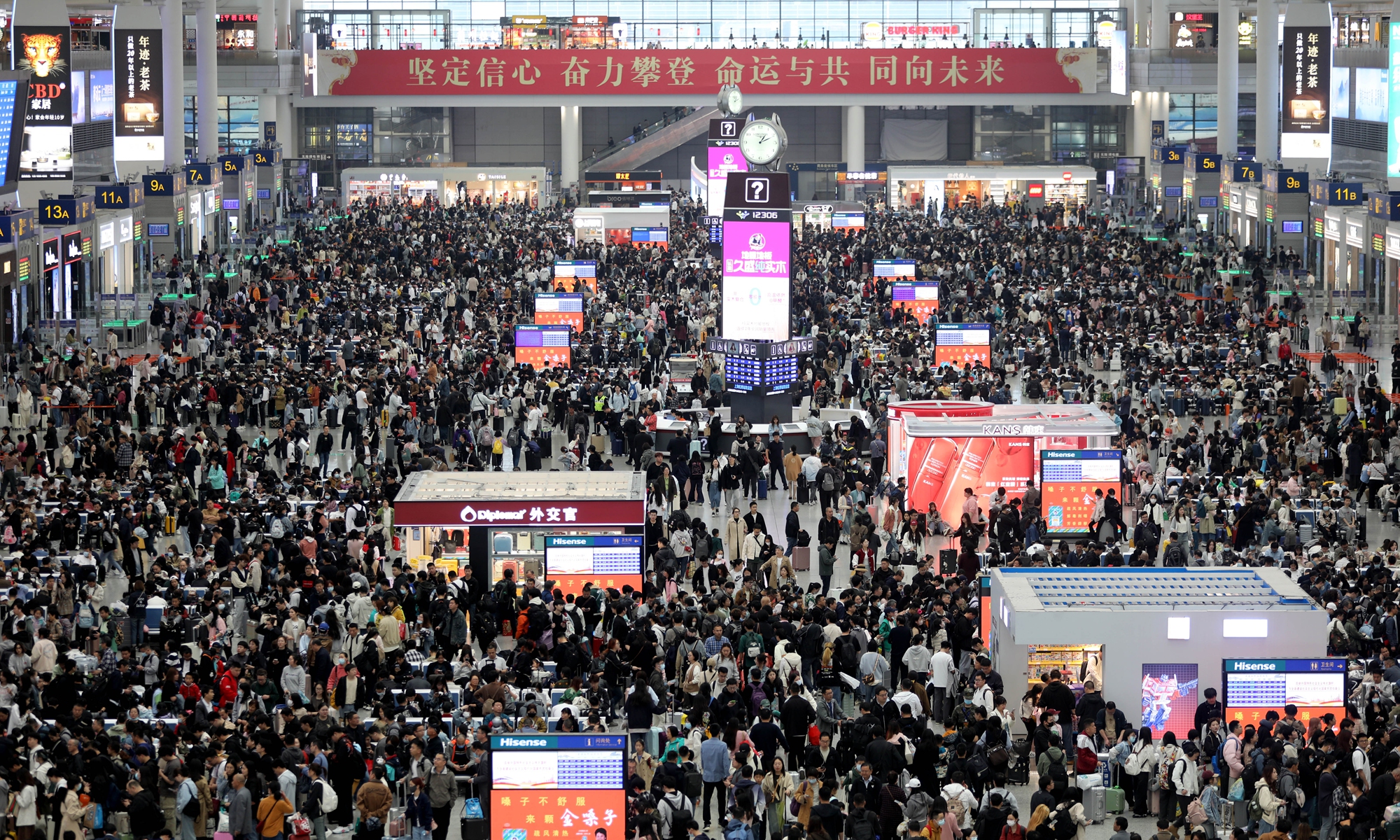 On Monday, the rail network covering the Yangtze River Delta region, one of the most developed regions in China, facilitated more than 2.645 million passengers, an increase of nearly eight percent year-on-year. The railway company expects to see 3.18 million passenger trips on Tuesday, according to media reports.