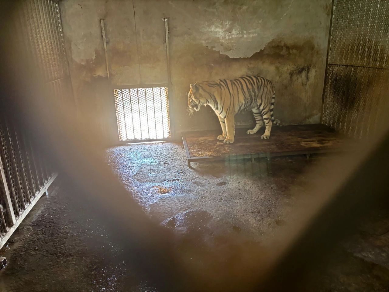 A Siberian tiger is kept in a small room in the wild animal park in Fuyang, East China’s Anhui Province. Photo: China Philanthropist