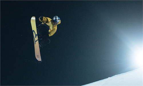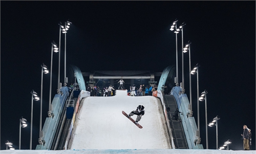 Chinese freeskiers Liu Mengting finished in second place at the FIS Snowboard & Freeski Big Air World Cup women's final in Shougang, Beijing, on Saturday. (Photos: Li Hao/GT)