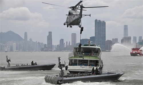 The Hong Kong Special Administrative Region (HKSAR) government conducted a large-scale counter-terrorism drill on Thursday at the Kai Tak Cruise Terminal to test interdepartmental coordination in responding to attacks and emergencies, as well as raising public awareness.