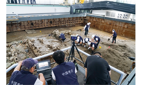 "The trial excavation of the Yangtze River Estuary No.2 ancient shipwreck has begun!" As a command was given at a dock of the former Shanghai Shipyard site along the Yangpu waterfront, a large black glass archaeological preservation chamber with steel ...