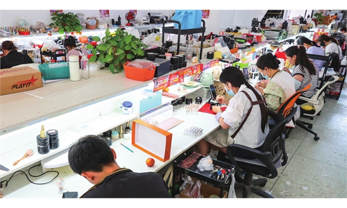 On a transparent nail piece just a few centimeters long, a designer first brushes on a deep indigo blue. With an even finer brush, she paints drifting white clouds – a kind of auspicious pattern in Chinese tradition, then uses ...