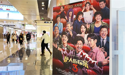 Real-time data from ticket platform Dengta, shows China's box office revenues in 2021 reached 10 billion yuan ($1.55billion) as of Tuesday morning, the day before the end of the Spring Festival movie season.