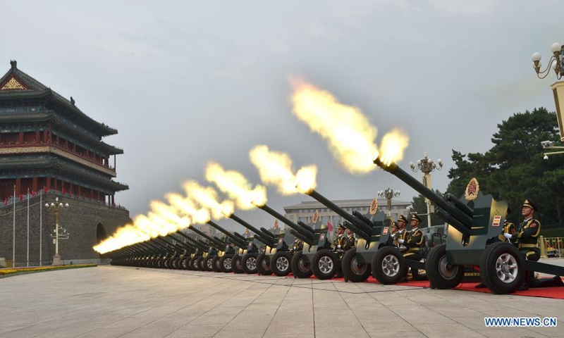 The 56 hundred-gun salutes, fired at Tiananmen Square in Beijing on Thursday to mark the ...