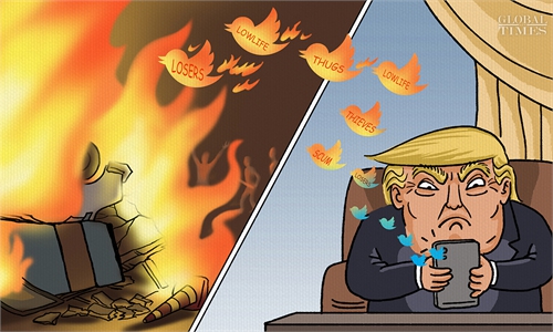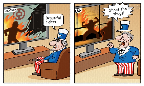 Watch US' double-standard approach as it aggressively cracks down on the ongoing domestic protests but deems Hong Kong violence "a beautiful sight to behold." Illustration: GT