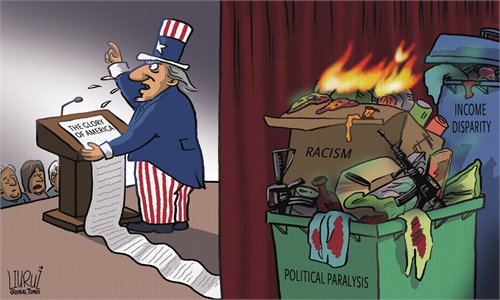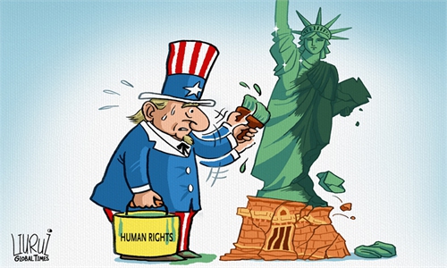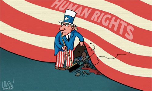 Look, Uncle Sam is busy cleaning up its own mess on human rights problems. Does the US still think it's the beacon of human rights? Illustration: GT
