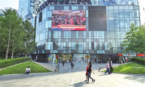 Premier Li Keqiang's press conference broadcasts live in public spaces, including subway LED screens in Beijing