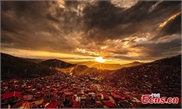 A sunset over Sertar County in Garze Tibetan Autonomous Prefecture, Southwest China's Sichuan Province. The county is home to the Larung Gar Buddhist Institute, the largest Tibetan Buddhist institute in the world.