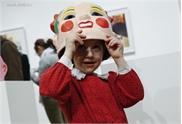 A girl puts on a "Chinese Happy Head" at the "Chinese Happy Heads in Brussels" photography exhibition in Brussels, Belgium, on March 28, 2017. Chinese artist Guo Dongbo and French artist Benoit began a project in 2015 by taking pictures of people in Brussels wearing "Chinese Happy Heads" in daily life. "Chinese Happy Heads in Brussels" photography exhibition will last until April 21.