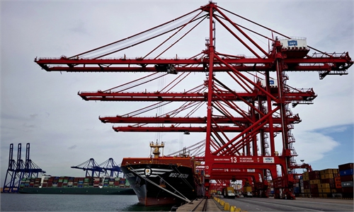 A large number of domestically produced cars gather at Yantai Port in East China's Shandong Province on November 26, 2025, waiting to be loaded onto ships for export. Photo: VCG