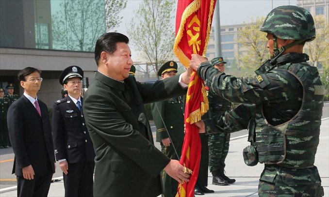 Chinese President Xi Jinping on Wednesday called on the country's armed police forces to forcefully act against terrorism, to safeguard national security and social stability.